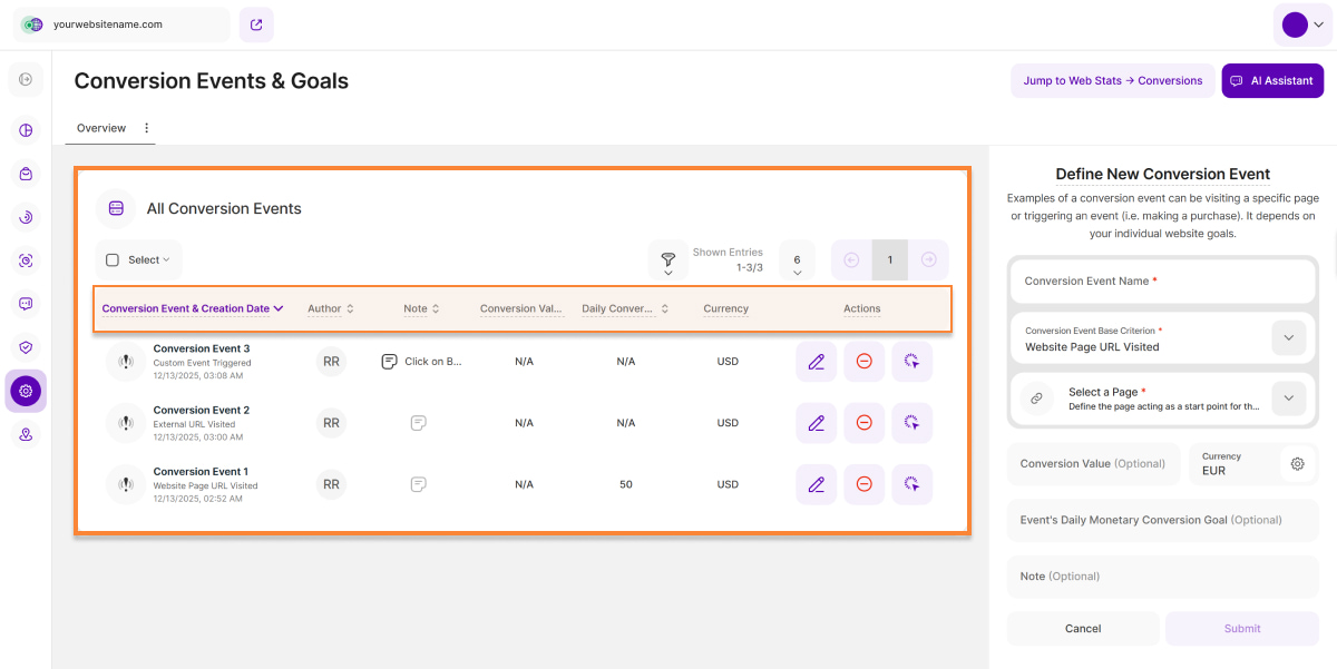 We've added the new Conversions submodule to Web Statistics. This powerful tool provides detailed information about your custom conversion events, helping you understand how users interact with your website.