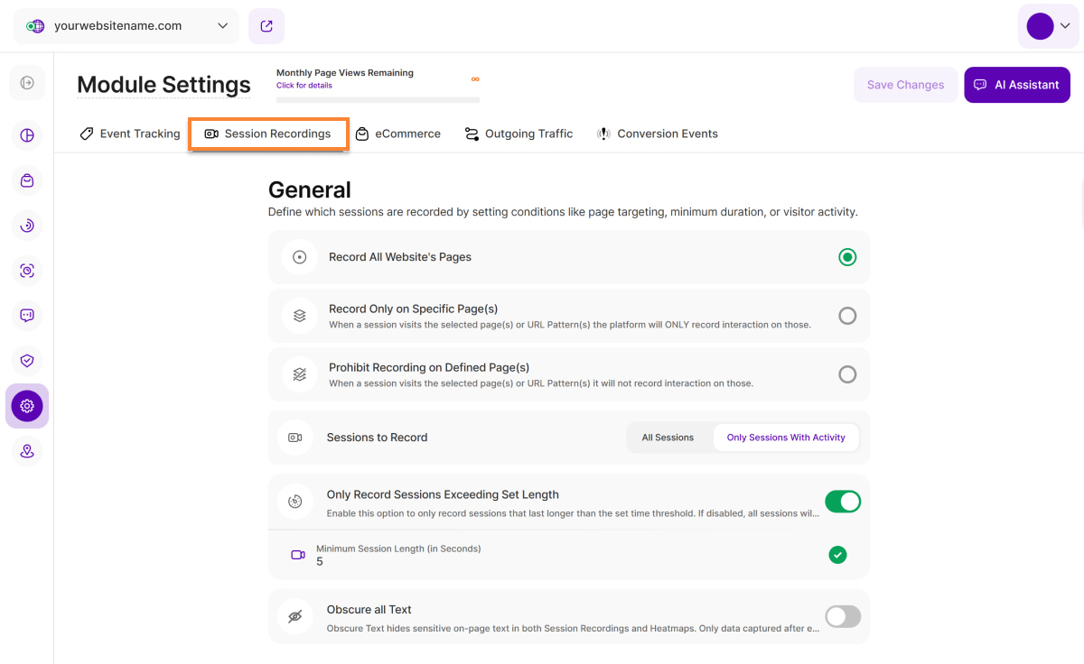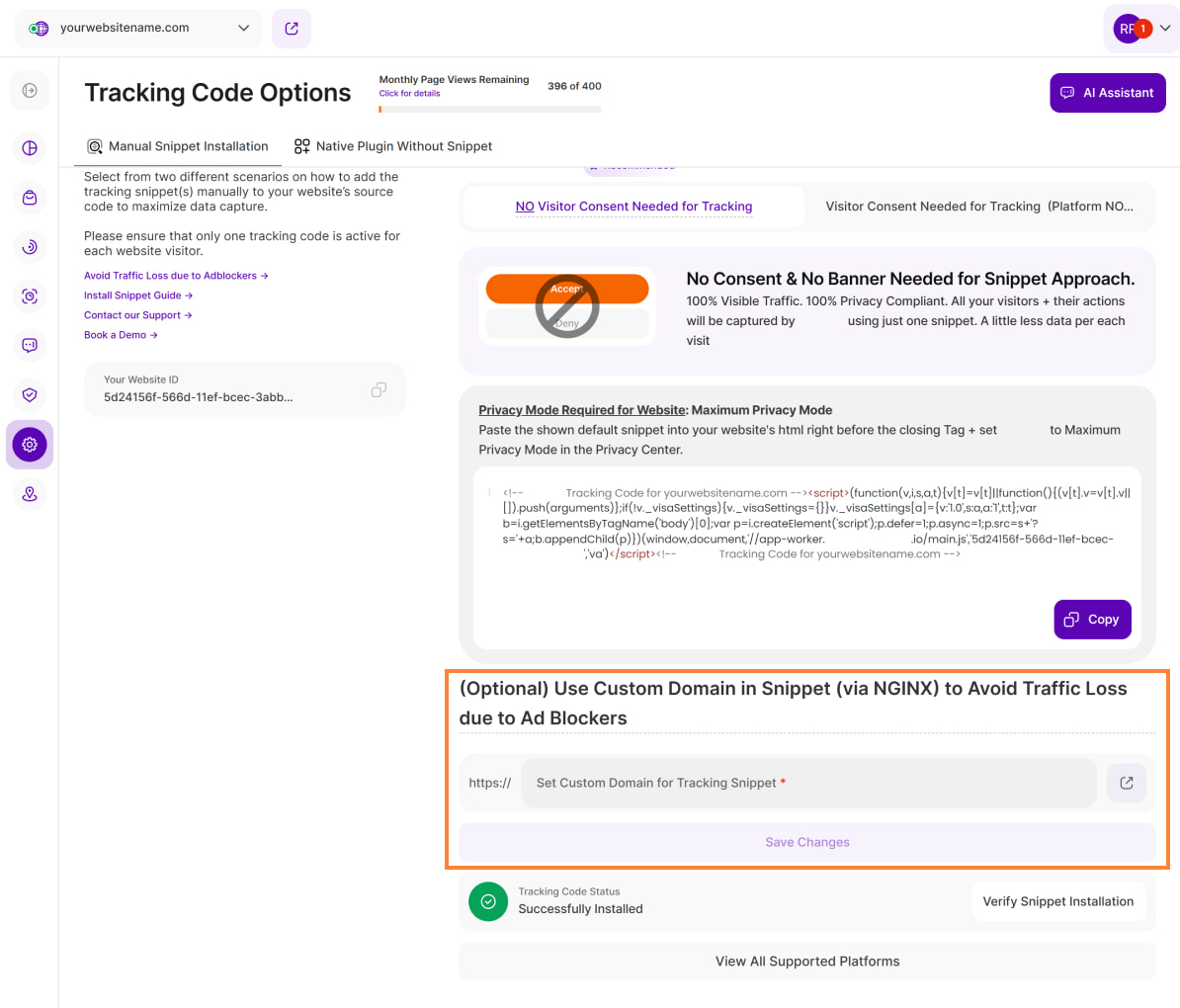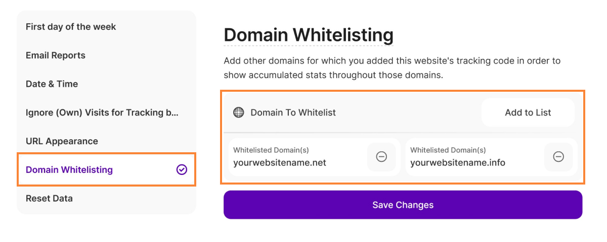 Domain Whitelisting lets you include your website's tracking code on related domains and subdomains, ensuring comprehensive visitor data.
