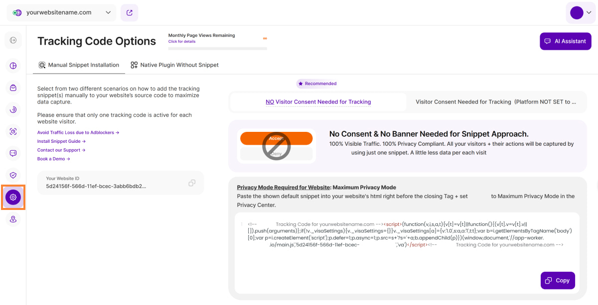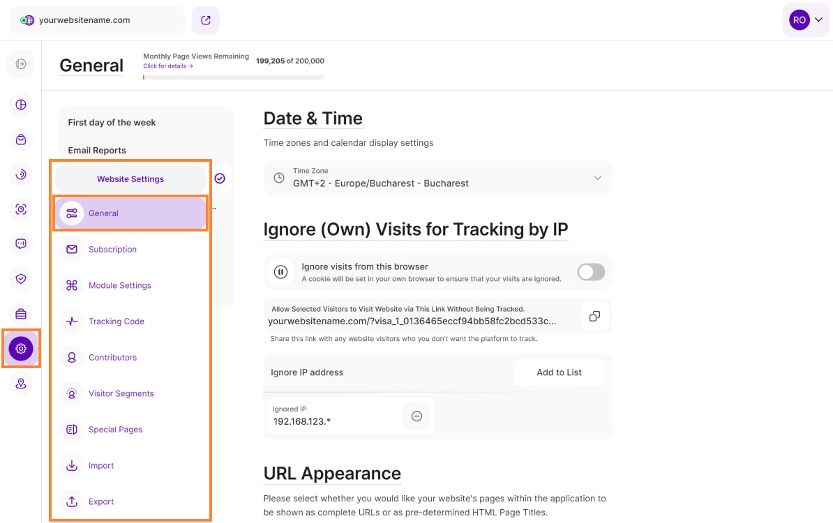 - Allow Selected Visitors to Visit Website via This Link Without Being Tracked: Unsure of your team's IP addresses or simply want to exclude specific visits? Share the unique link displayed in this section with them. Visiting your website through this link will automatically prevent their activity from impacting your data analysis.